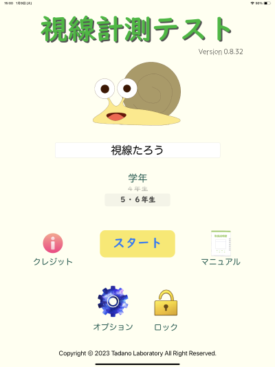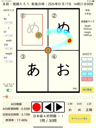 児童に選択肢をを目で追いながら選択させ、特性を計測します。