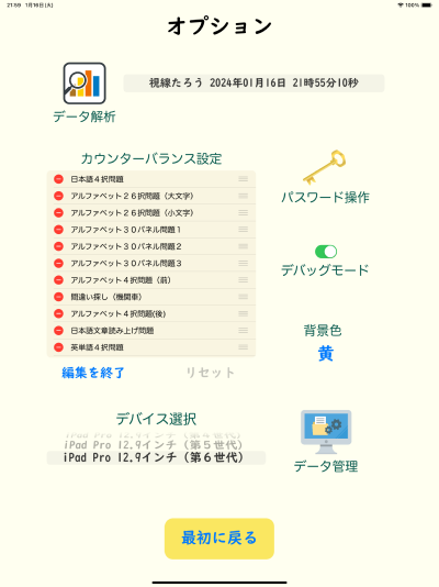 オプションメニューでは、計測した児童のデータを簡易解析したり、収集したデータを外部に転送したりできます。