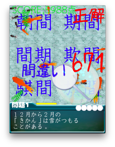 金魚すくいの要素に付け加え、漢字を楽しく学習することを目的としたアプリで、金魚のリアルな動きにこだわりました。