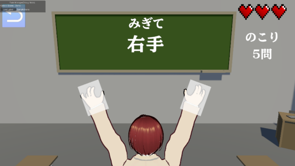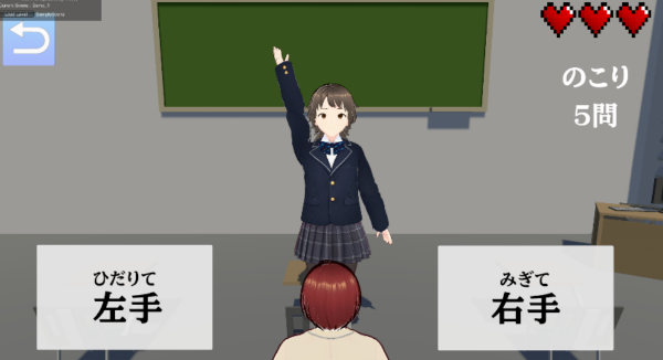 問題に従い右手・左手、どちらを挙手するのかを問うステージ。