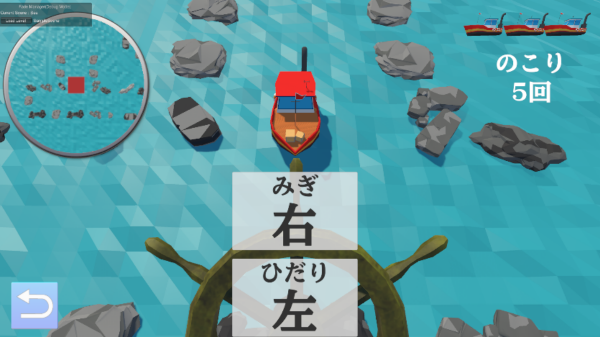 曲がり角に到達した際に出題される問題に対し、矢印の方向を選択することで海の上を進んでいくステージ。