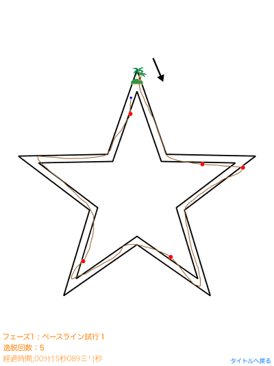 検査内容は、いわゆる「イライラ棒」のようなもので、二重線で書かれた星形の間を教示に従ってはみ出さないように1周することを求められます。