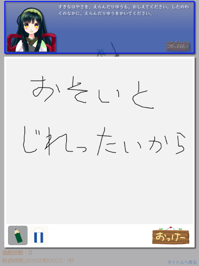 途中、質問内容に手書きで答えを入力する場面もあります。