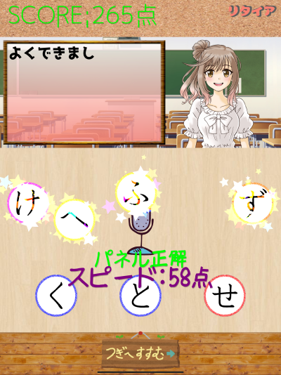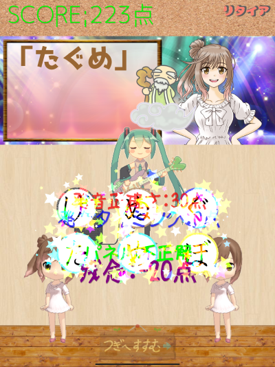 リズムモードでは並べられたパネルを出題されたことば通りに順番で押しながら、間奏のリズムに合わせて同時に発音してもらいます。