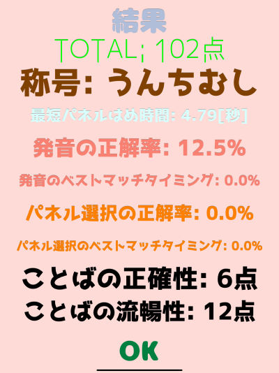 総合評価はことばの発音のタイミングと正誤判定で行います。